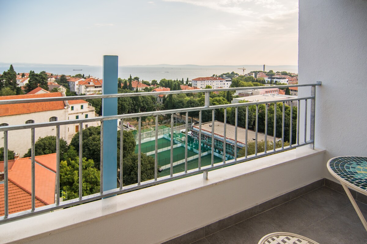 Beschreibung des Apartments Split Pearl: Moderne Wohnung in der Nähe des Stadtzentrums und des Strandes Bačvice, im obersten (8.) Stock mit zwei Balkonen und atemberaubendem Meerblick. Zwei Schlafzimmer mit Doppelbetten, zwei Badezimmer (eines en suite) und ein Wohnzimmer mit einem Schlafsofa, das für zwei weitere Gäste erweitert werden kann. Voll klimatisiert, ausgestattete Küche, Begrüßungsgetränk und Snacks. Fernseher mit MAXtv, HBO Max und Netflix. Lebensmittelgeschäft, Obstmarkt, Apotheke und 24/7-Tankstelle direkt neben der Wohnung.