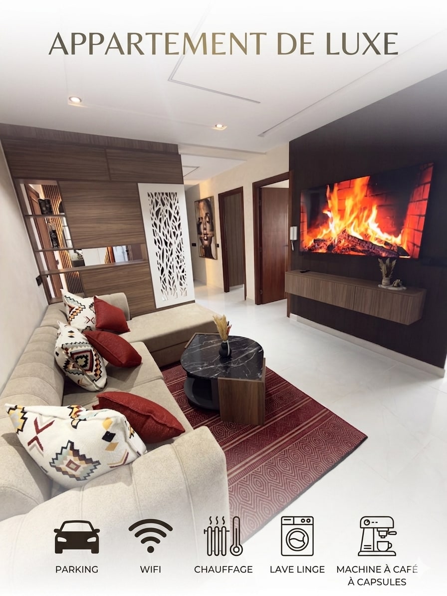 Ce logement familial dans une résidence sécurisée en plein centre ville Boulevard Mohammed VI. proche de tout commerce, à 2 min à pied de la plage et à 10 min à pied de la cité portugaise et Port El Jadida.