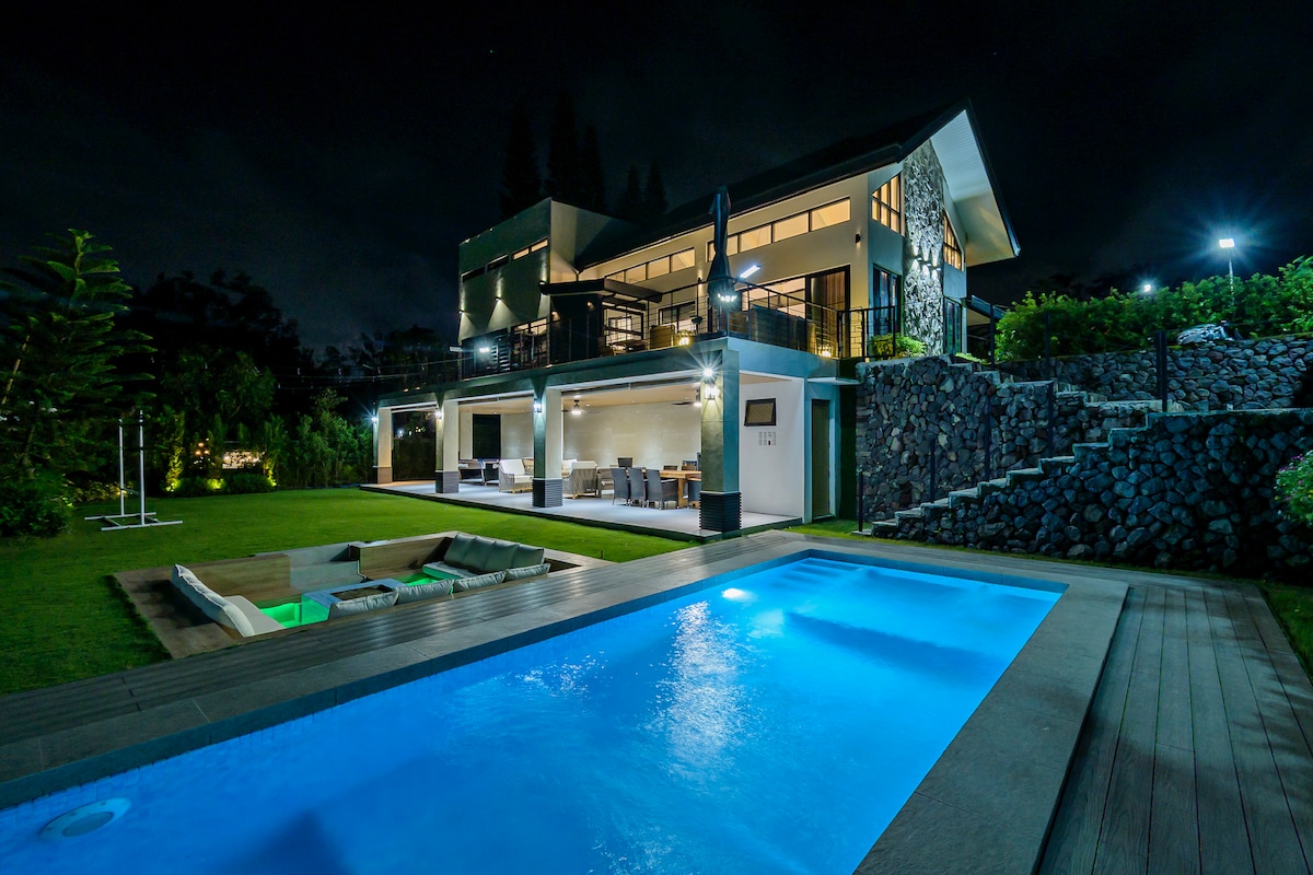 Ziehe dich in die A-Rahmen-Villa zurück, die günstig in der Nähe des Herzens von Tagaytay liegt. Wache in einer atemberaubenden Umgebung mit einem Garten, der sich perfekt für Instagram eignet, und einer eleganten Inneneinrichtung auf, die sicherlich beeindrucken wird. Tauche ein in luxuriöse Annehmlichkeiten wie den privaten Pool und Whirlpool, perfekt für Familien und Gruppen. Beheizter Pool und Whirlpool sind gegen einen Aufpreis verfügbar. WLAN mit Starlink-Hochgeschwindigkeits-Internet.