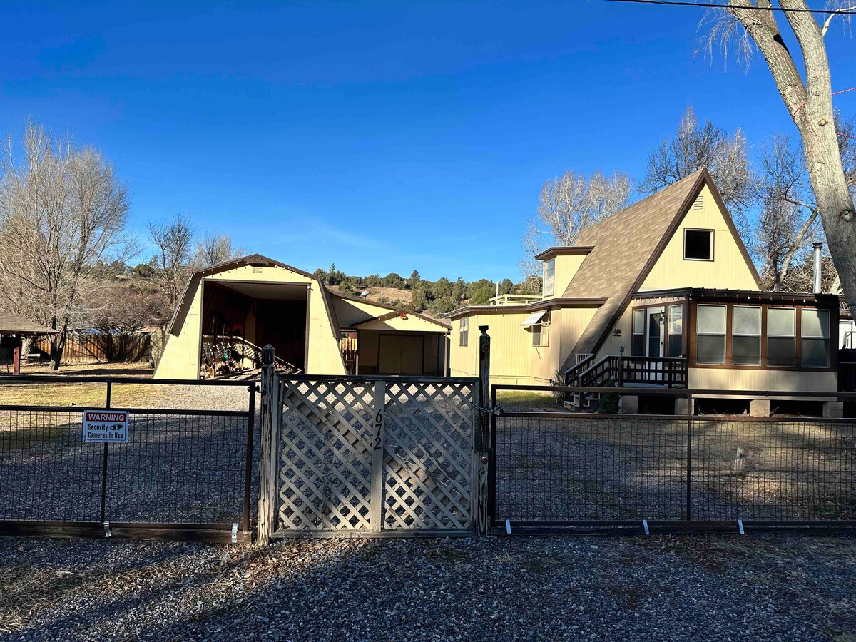 Dieses wunderschöne Haus mit 3 Schlafzimmern und 2 Badezimmern befindet sich auf über einem Acker in einer ruhigen und abgelegenen Wohnsiedlung in der Nähe der Stadt. Genieße ruhige Morgen und atemberaubende Sonnenuntergänge auf der hinteren Veranda, während du ein wunderbares Abendessen grillst. Besuche unseren Stadtteil mit lokalen Geschäften, Restaurants und Kunstgalerien, die nur 3 Meilen entfernt sind, und unser historisches Pinos Altos, wo das ganze Jahr über tolles Essen, Wandern und Radfahren stattfinden. High-Speed-Internet, Comcast-Kabel, 70-Zoll-TV, gut ausgestattete Küche und Garage für zwei Autos.