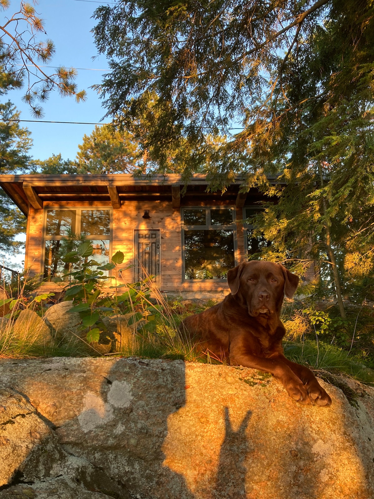 Dies ist ein winziges Ferienhaus in einer verschlafenen kleinen Mulde, die sich zur Georgian Bay öffnet. Im Inneren wurde jeder Stein sorgfältig ausgewählt und die Holzarbeiten wurden Stück für Stück von zwei Handwerkern gebaut, die hochqualifiziert und leidenschaftlich bei der Wiederverwendung sind. Es ist eine Kunst, die dich in Ehrfurcht versetzen wird; vor allem, wenn du dir Sorgen um die Klimakrise machst. Die Kleiderbügel sind wiederverwertete 100 Jahre alte Eisenbahnspikes! Wenn du auf der Suche nach Luxus bist, wirst du enttäuscht sein, aber wenn du ein Minimalist bist, wirst du es lieben.