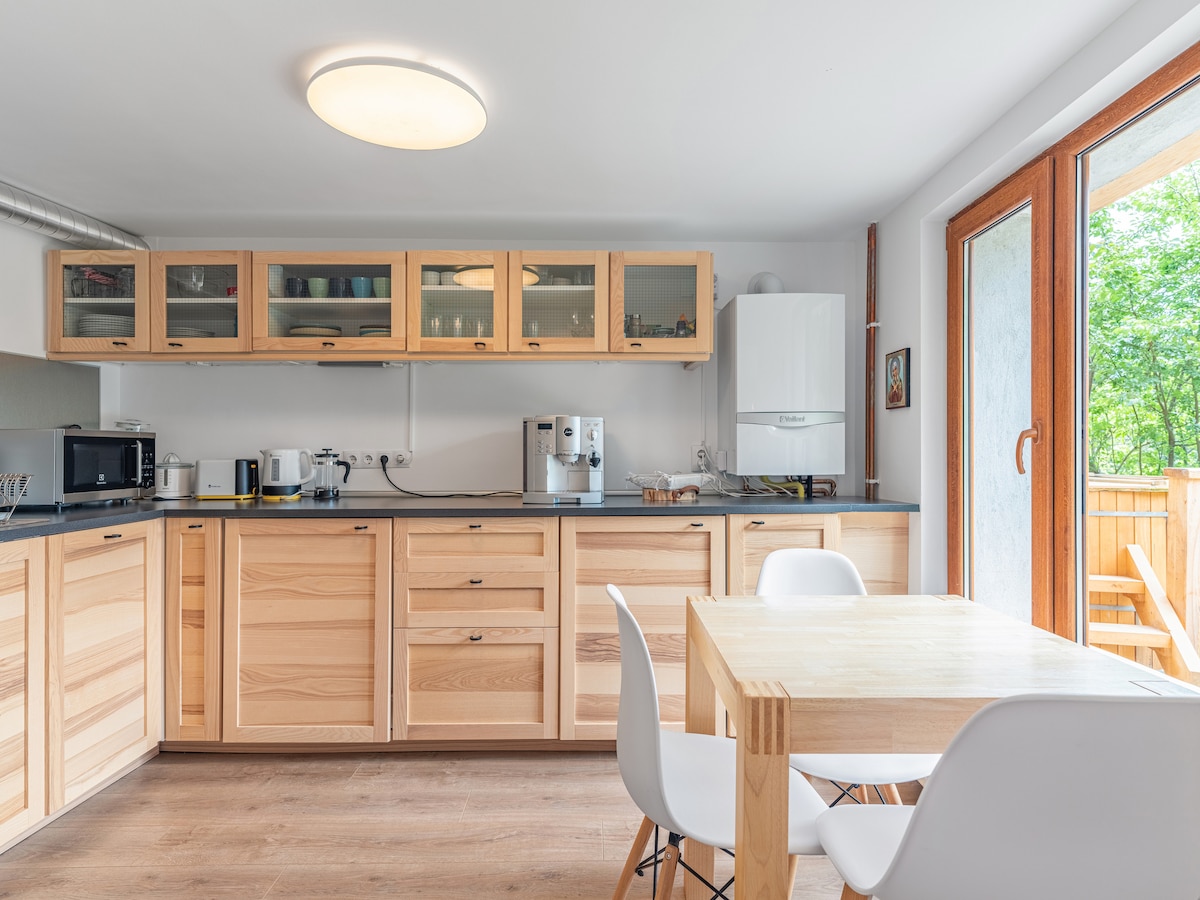 Im Halbkeller haben wir eine Wohnung mit Sauna mit Schlafzimmer, Wohnzimmer mit Schlafsofa, Pavillon, der separat gemietet wird, ideal für 1 Familie. Viel Spaß mit der ganzen Familie in diesem stilvollen Ort. Ideal für 2 Familien mit Kinder. Im Erdgeschoss haben wir eine ausgestattete Küche (inkl. Geschirrspüler und Waschküche, Kaffeemaschine, Toaster, Mixer,…). Essbereich für 6-8 Personen, Entspannungsbereich mit Kamin, TV, Schlafsofa und Badezimmer. Im Obergeschoss 2 große Schlafzimmer, 1 kleines Schlafzimmer und ein Badezimmer