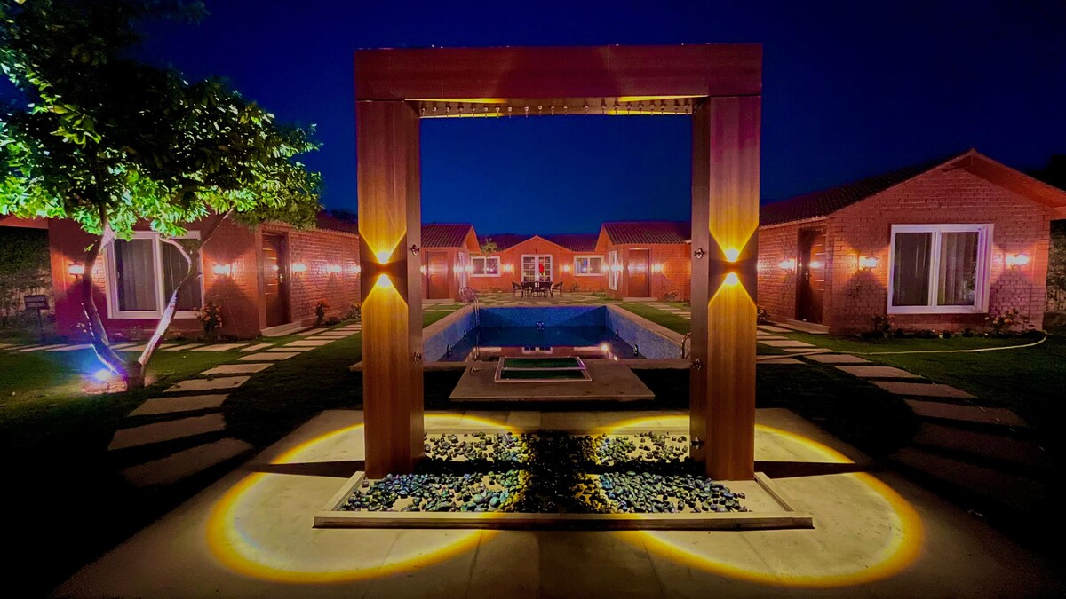 Mach es dir in dieser einzigartigen und ruhigen Unterkunft gemütlich, die perfekt für diejenigen ist, die sich entspannen und wieder verbinden möchten. Ideal für Familien- und Freundesfeiern, Kurzaufenthalte, besondere Momente, Geburtstage und Fotoshootings vor der Hochzeit. Du wirst einen Boutique-Pool mit einem Wasserfall und ein paar ethnischen Baithaks mit einem Choolha, Jhoola, Lagerfeuerstelle, gepflegten Garten und Pavillon genießen, die alle für Entspannung oder kleine, intime Familienfeiern konzipiert sind. Erlebe saubere, luftige und grüne Aussichten in dieser einzigartigen Oase!