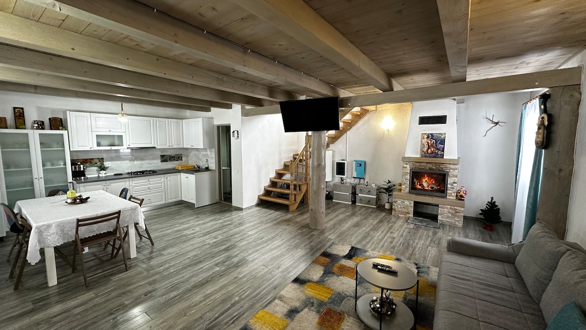🌿Das Ferienhaus ist komplett vermietet! Unser Haus befindet sich 300m von der Hauptstraße entfernt, die Ruhe und frische Luft zum Ort bietet. Die Küche und das Wohnzimmer befinden sich im Erdgeschoss. Im Garten haben wir einen geräumigen Pavillon und Grillplatz Die Zimmer bieten einen schönen Blick auf das Dorf, und ein abendlicher Spaziergang würde nicht schaden. Auch hinter dem Haus haben wir einen leichten Hügel zum Klettern.