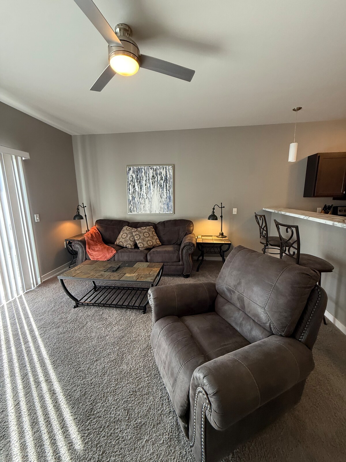 Gemütliche, saubere und schicke Wohnung eine Treppe hinunter in der unteren Ebene eines Triplex in der Nähe der Augustana University, der University of Sioux Falls, des North American Seminary, der Sanford & Avera Hospitals und des Midco Aquatics Center. Zentral gelegen in der Nähe der Innenstadt und eine einfache Fahrt zur Empire Mall und zum Great Plains Zoo. Elektrischer Kamin. Zugang zur Terrasse mit Bistro-Beleuchtung und Feuerstelle im Garten. Saubere und sichere Nachbarschaft. Waschmaschine auf der gleichen Etage. WLAN und ChromeCast-Streaming. Parkplätze auf der Straße stehen zur Verfügung.