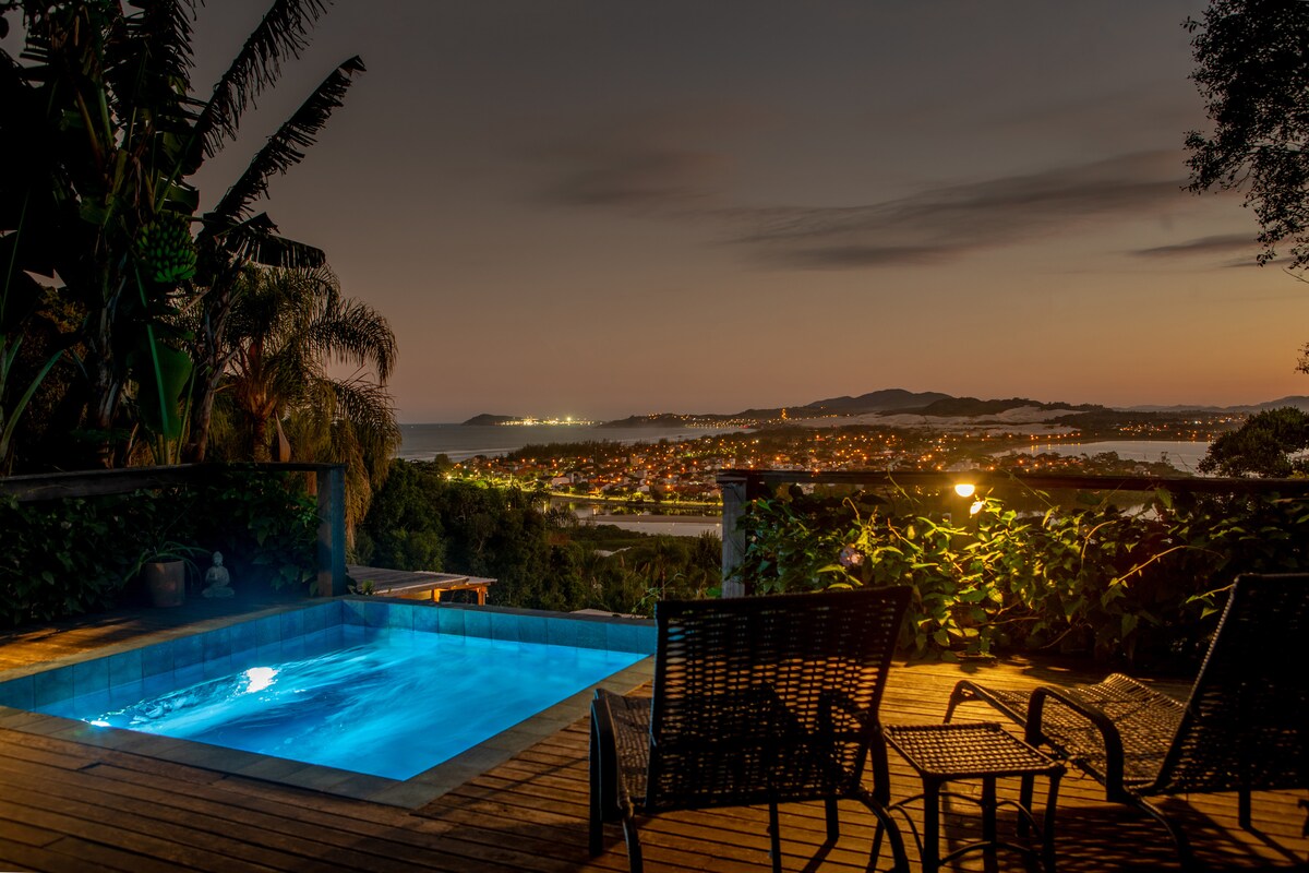 Mit Blick auf den Strand von Pantano do Sul und Azoren, Recanto do Ilhéu, ein privater Raum, bietet dir ein privater Raum Ruhetage in Kontakt mit der Natur. Das Haus verfügt über 56 M ² mit einem Zimmer im Zwischengeschoss mit Whirlpool und Klimaanlage. Platz, um das Auto im Haus zu lassen, 6 x 3 m beheizter Pool, umgeben von einer Terrasse, ein ausgezeichneter Ort, um sich zu entspannen und den Sonnenuntergang zu genießen, wir haben die Möglichkeit, Frühstück, Massagen und separate Touren zu genießen.