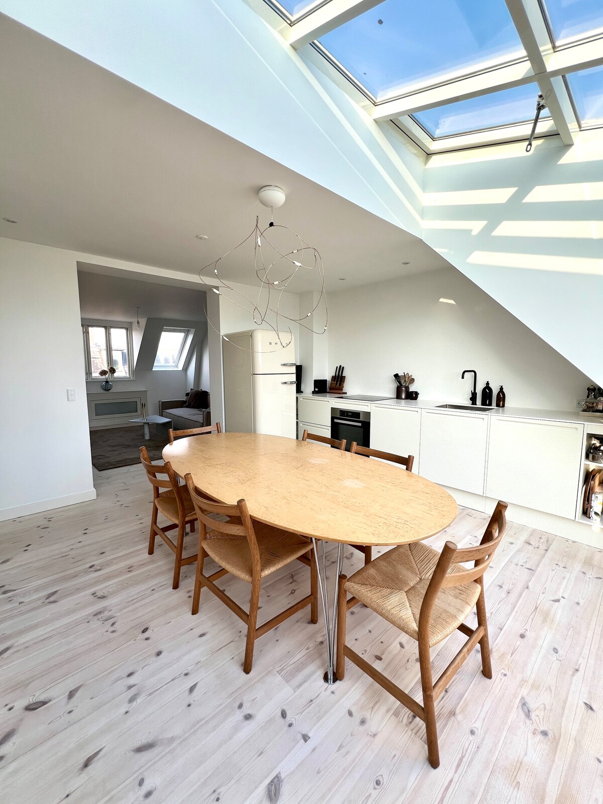 Willkommen in unserer gemütlichen Wohnung mit zwei Schlafzimmern im Kopenhagener Kanalviertel, das oft als „Venedig des Nordens“ bezeichnet wird. Perfekt gelegen zwischen ruhigen Wasserstraßen und dem Trubel der Stadt, ist es ein wahrer Hygge-Rückzugsort. Entspanne dich auf der privaten 64 m² großen Dachterrasse mit Panoramablick, genieße Kaffee auf dem sonnigen Balkon oder mach es dir drinnen gemütlich, umgeben von Pflanzen, Kunst und nordischem Charme. Mit einfachem Zugang zur U-Bahn, Parks und Cafés in der Nähe ist diese Wohnung perfekt für Geschäftsreisen, romantische Kurzurlaube oder Familienaufenthalte das ganze Jahr über.
