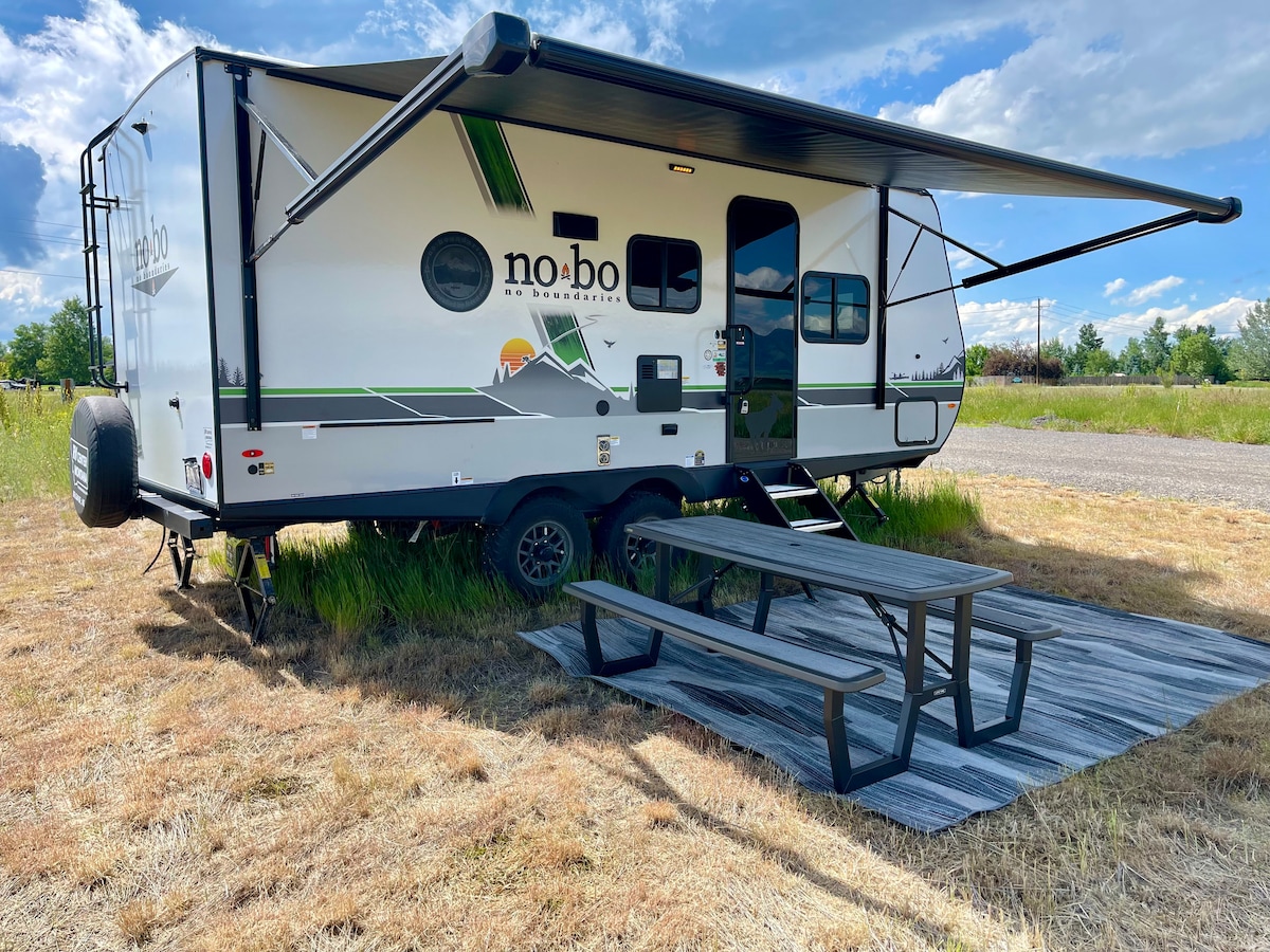 Wohnmobil mit Bergblick in der Nähe von YNP/Chico auf 25 Hektar