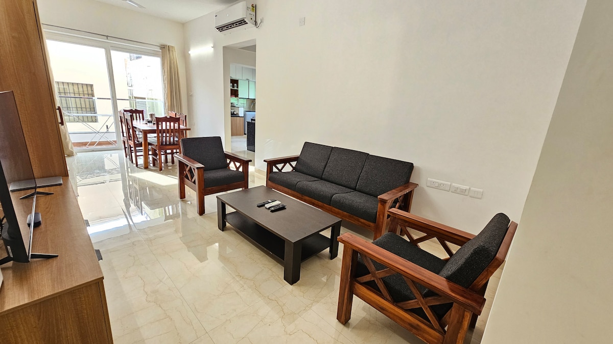 Geräumige 2BHK in der Nähe des Flughafens | AC, RO, Kühlschrank, WM