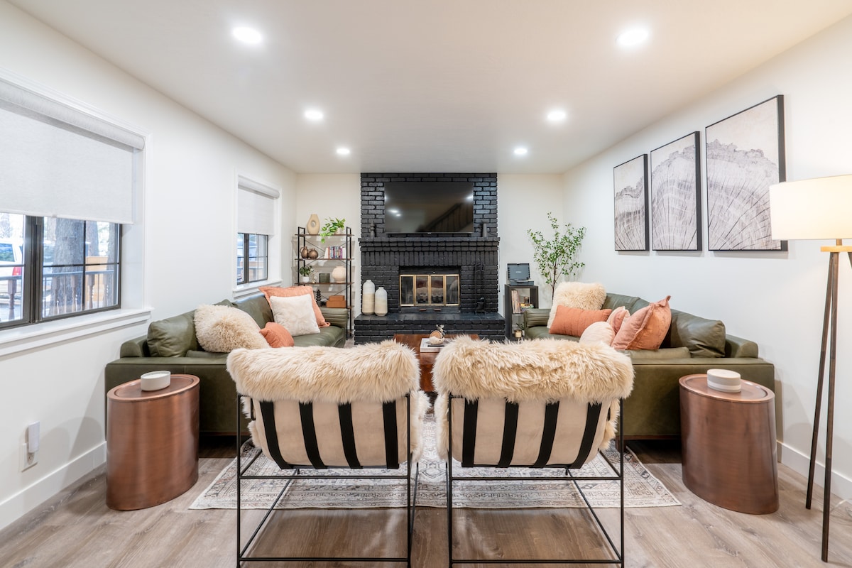 Nur 5 Gehminuten vom Snow Summit entfernt! Entspanne dich in Big Bear und genieße dieses gemütliche, Designer-, frisch renovierte Haus auf zwei Ebenen. Voll ausgestattet mit Grundausstattung und geheimen unterhaltsamen Zimmern für Kinder (siehe Beschreibung unten). Riesiger eingezäunter Garten, optimal mit Whirlpool, Grill und Feuerstelle, sorgt für den absolut perfekten Bergurlaub zu jeder Jahreszeit! Günstig gelegen in der Nähe mehrerer Skigebiete und bemerkenswert nah an den Restaurants und dem Nachtleben von The Village.