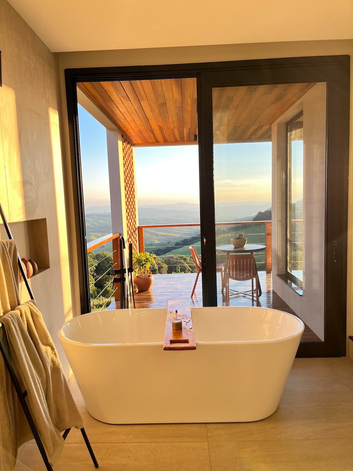 Refúgio romântico em meio à natureza, ideal para casais. Chalé estilo suíço (A-frame) em sítio cercado por cafezais, com rio e cachoeira particulares. Possui banheiras externas com vista para a Serra da Mantiqueira, jacuzzi interna, fogueira, churrasqueira, quadra de beach tênis, cama-balanço, sauna seca com vista e projetor interno com telão de 100”.