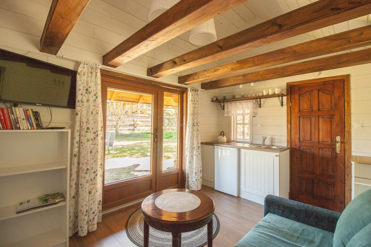 Ein ganzjährig bewohnbares Holzhaus in der Pufferzone des Waldes, Wiesen und eines alten Obstgartens. Landschaft und Naturparadies. Hängematten, Sommerküche, Badeseen, Spielplatz, Angelstationen in der Nähe. Der perfekte Ort zum Wandern und Radfahren. Wir haben ausgedehnte Weiden, du bist mit Pferden willkommen. Möglichkeit, lokale Produkte zu kaufen (Aufschnitt, Käse, Brot, Marmeladen, Eier, Gemüse) Touren in die nähere und weitere Umgebung - Augustowski-Kanal - Biebrza-Nationalpark -Puszcza Knyszyńska und Augustowska – Kaunas und Vilnius
