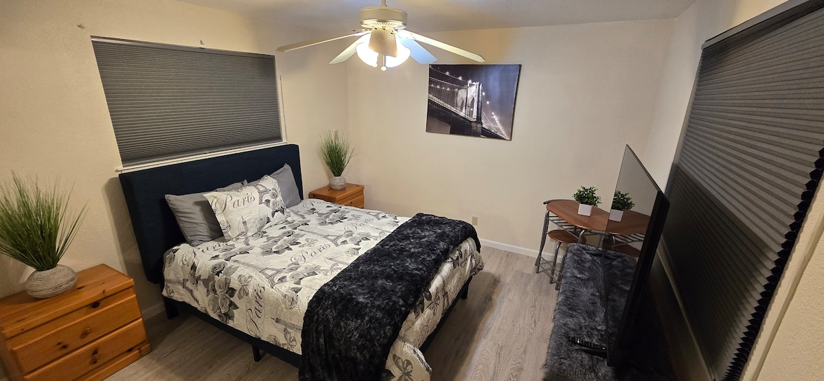Lehne dich zurück und entspanne dich in diesem ruhigen, stilvollen Raum. Checke früher um 14:00 Uhr ein und später um 12:00 Uhr aus. Dieser elegant eingerichtete Raum verfügt über einen großen Flachbildfernseher, ein bequemes Queensize-Bett, eine voll ausgestattete Küche, einen Schreibtisch und einen geräumigen Kleiderschrank. Alle befinden sich in einer großartigen Nachbarschaft in der Nähe von Travis AFB.