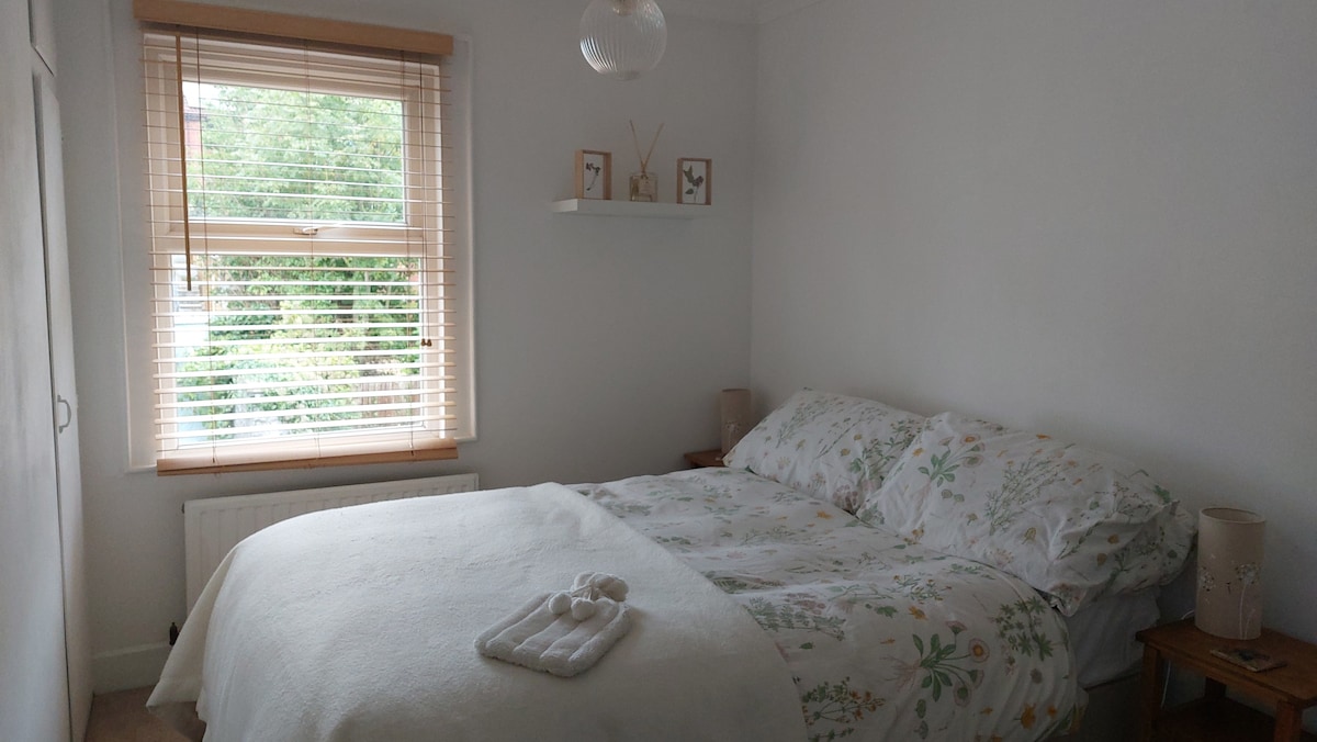 Beliebtes, kleines, ruhiges Zimmer auf der obersten Etage mit einem bequemen Einzelbett. Das ist unser Lieblingszimmer im Haus! Es befindet sich auf der Rückseite des Hauses mit Blick auf den Garten und neben dem Badezimmer. Es gibt zwei Treppen bis zum Zimmer, das sich im dritten oder obersten Stockwerk unseres Stadthauses befindet. Das Zimmer verfügt über einen Schreibtisch und Stauraum für Taschen draußen auf dem Treppenabsatz. 5 Gehminuten vom Bahnhof, dem Stadtzentrum und dem örtlichen Park entfernt.