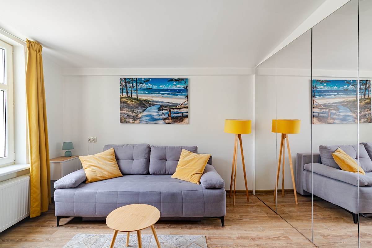 Sobald Sie die Eingangstür der Wohnung in Sopot öffnen, werden Sie sich in ihren einzigartigen Charme verlieben. Die Ferienwohnung Emily 1 ist mit außergewöhnlichem Geschmack im Hampton-Stil eingerichtet, was bedeutet, dass Sie sich gut entspannen und erholen können. In den hellen und geräumigen Zimmern finden Sie Ruhe und Entspannung und können die Sorgen des Alltags vergessen. Ein Strandurlaub in Sopot hat viele Vorteile, wenn Sie sich für eine besondere Unterkunft entscheiden.