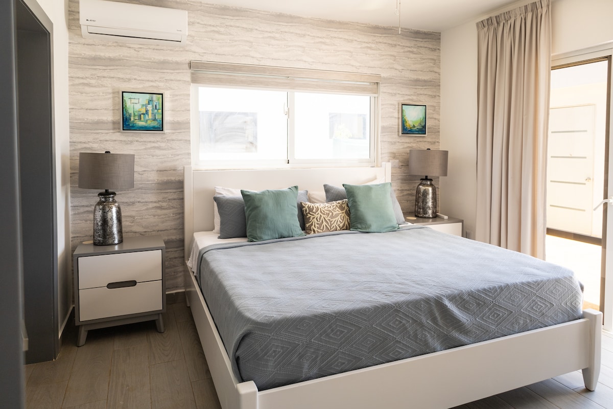 Fühl dich in unserem neuen modernen Studio in Cabarete wie zu Hause, das sich im farbenfrohen Viertel „Callejón De La Loma“ befindet – nur einen kurzen Spaziergang vom Strand und allen wichtigen Sehenswürdigkeiten entfernt. Dieser moderne Raum verfügt über ein offenes Schlafzimmer mit einem Queensize-Bett, eine funktionale Küche, ein geräumiges Badezimmer und einen privaten Balkon. Entworfen mit großen Schiebetüren für viel natürliches Licht, wird es mit gemütlichen Vorhängen, spanischen Fliesen und einer stilvollen Mischung aus Holz- und Stahlelementen akzentuiert.