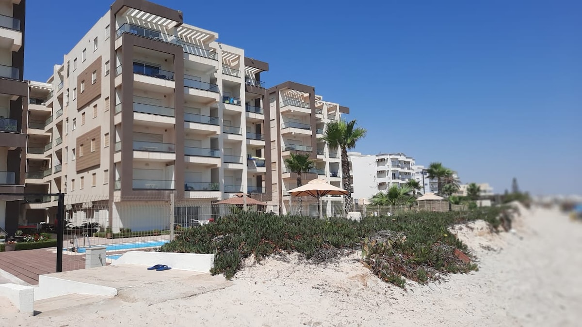 Verbringen Sie Ihren Urlaub direkt am Wasser in diesem geräumigen S+3 für 6 Personen in Sousse. Direkter Zugang zum Strand, gesicherter Pool, Meerblick. Ideal für Familien oder Gruppen, mit 3 komfortablen Schlafzimmern, Terrasse und allem, was für einen erholsamen Aufenthalt benötigt wird. In der Nähe der Mall of Sousse, des Hard Rock Cafés und Port El Kantaoui. ✅ Pool ✅ Strand nur wenige Schritte entfernt ✅ Terrasse ✅ Klimaanlage ✅ Ausgestattete Küche Sicherer ✅ Tiefgaragenplatz