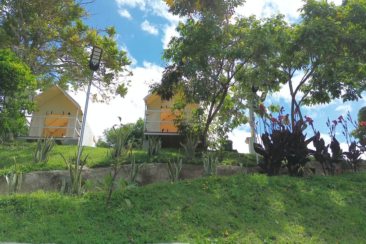 Glamping. Teebezüge verfügen über ein Doppelbett und alle Basics (Stecker, Moskitonetz, Ventilator, Bettwäsche.) Erhalte den Tag inmitten der Natur , schlafe, begleitet vom Klang der Wellen, oder genieße unsere Liegebereiche, einschließlich des Pools . Surfe jeden Tag an nahe gelegenen Weltklasse-Spots, zum Angeln und Genießen unserer Tiki-Bar . Kostenloses WLAN.