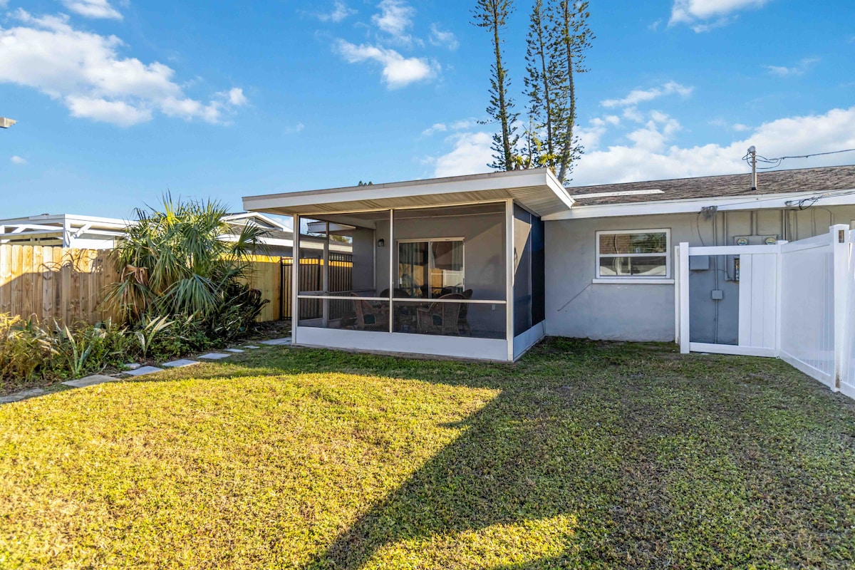 Willkommen zu deinem perfekten Urlaub in West Bradenton, Florida! Dieses wunderschön renovierte Haus mit 2 Schlafzimmern und 2 Badezimmern ist für Entspannung und Unterhaltung konzipiert. Genieße klassische Arcade-Spiele, entspanne dich an der gemütlichen Feuerstelle oder sammle dich zum Grillen im Essbereich im Freien. Das Haus ist komplett mit Strandutensilien, Brettspielen, einem Hochstuhl und einem Pack n' Play ausgestattet, was es ideal für Familien macht. Bleibe mit kostenlosem WLAN in Verbindung und nutze die Vorteile der Waschmaschine und des Trockners.