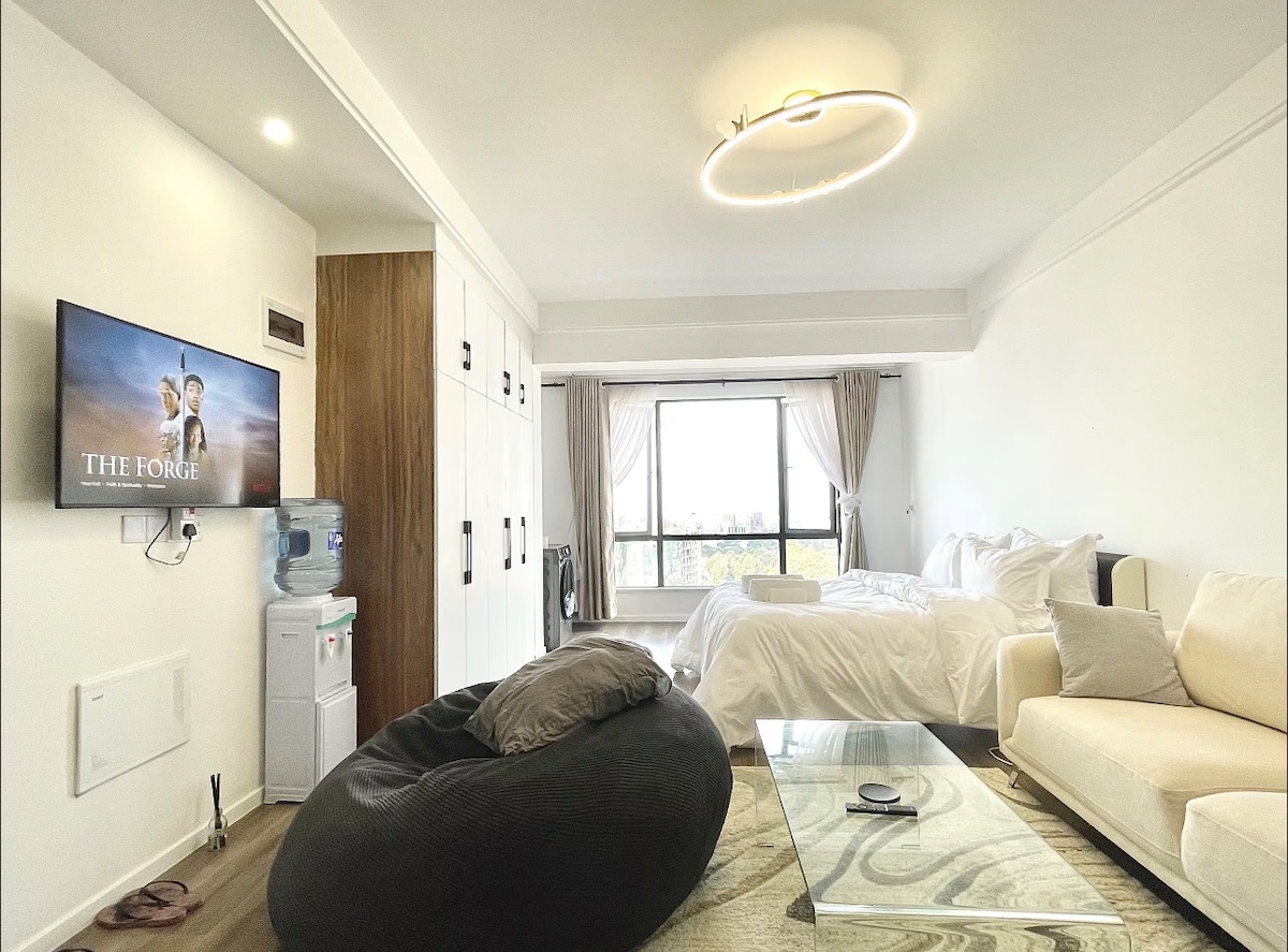 Helles und luftiges Studio mit Stadtblick + Fitnessraum + Schreibtisch