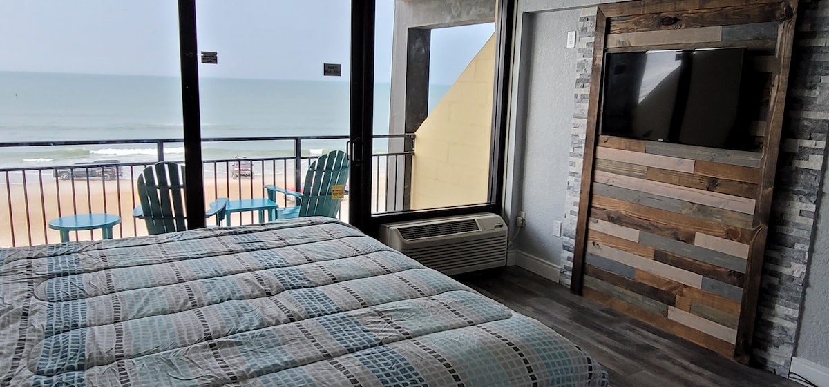 ÜBERNACHTUNGSPREIS REDUZIERT aufgrund von Gebäuderenovierungen, die unsere Balkonnutzung einschränken. Es gibt derzeit keinen Zugang zum Balkon und die Aussicht wird behindert*. AM STRAND! Dein ganz eigenes gemütliches, geräumiges Studio in Daytona Beach Shores liegt am ruhigen Strand von Daytona und nur wenige Minuten von einer Vielzahl von Aktivitäten und Restaurants entfernt. Unsere Unterkunft im 6. Stock ist komplett renoviert und verfügt über kostenloses WLAN mit mehr als 45 Mbit/s, eine voll ausgestattete Küchenzeile und kostenlose Parkplätze. *Balkon bis März nicht verfügbar.