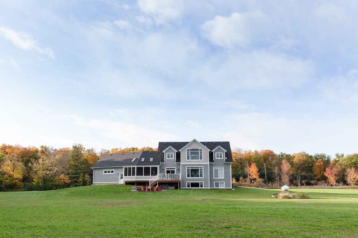 Eingebettet in ein großes Waldgrundstück, ist das Redhaus ein maßgeschneidertes Familienhaus. Das komplett aus Holz mit exquisiter Handwerkskunst erbaute Redhaus bietet eine Zuflucht vor dem ansonsten geschäftigen Leben. Niedrige Lichtverschmutzung macht es zu einem perfekten Ort, um den Nachthimmel und die Nähe zum Mazinaw Lake und dem Bon Echo Provincial Park zu beobachten, was bedeutet, dass du tagsüber viel zu erkunden hast. Beobachte wunderschöne Sonnenuntergänge vom Hügel auf dem Grundstück aus, genieße das abendliche Grillen an der Feuerstelle oder den überdachten Pavillon mit Holzkamin.