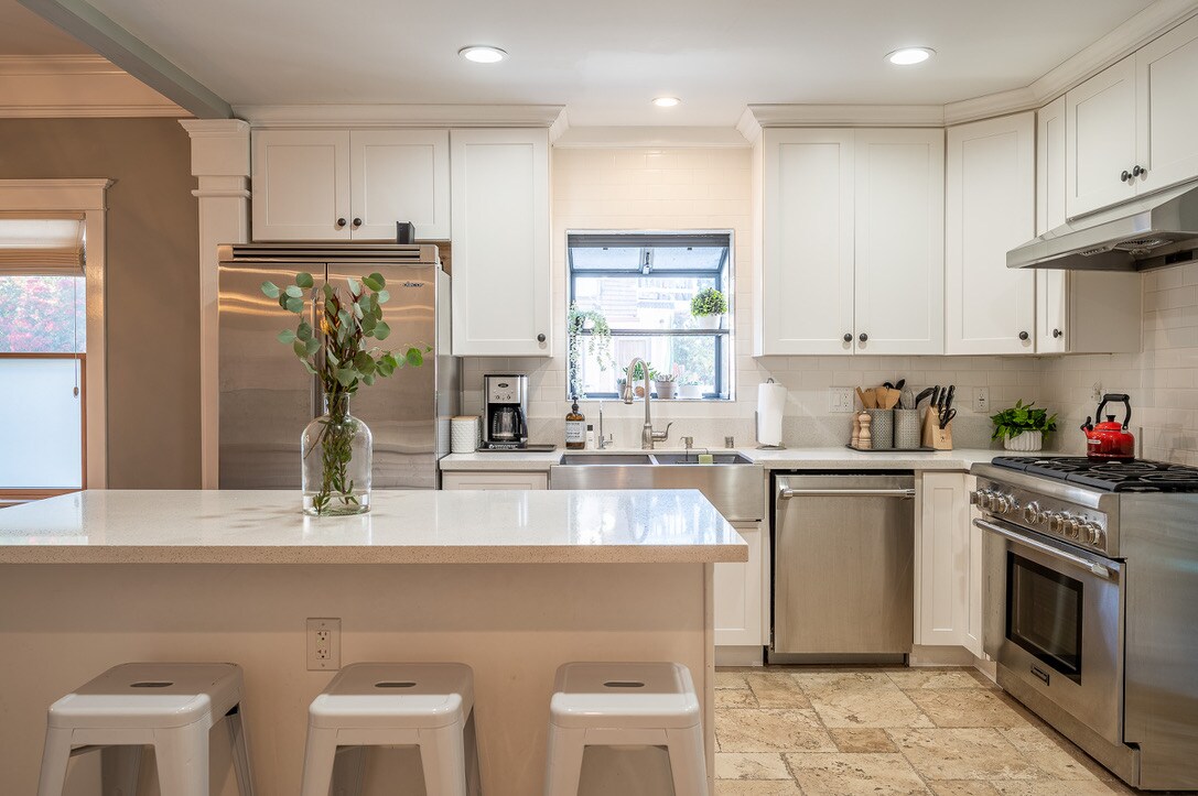 Willkommen in unserem charmanten Vorderhaus im Craftsman-Stil, dem Juwel eines ruhigen Triplex im sonnigen Kalifornien! Diese geräumige Einheit mit 4 Schlafzimmern und 3 Badezimmern ist perfekt für Familien oder Gruppen. Genieße Möbel aus der Mitte des Jahrhunderts, die historischen Charme mit modernem Komfort verbinden. Entspanne dich im privaten Vorgarten, der perfekt ist, um die kalifornische Sonne zu genießen. Mit einer großartigen Lage, nur wenige Gehminuten von Trader Joe's entfernt, ist es der ideale Rückzugsort für diejenigen, die Stil und Komfort in einer ruhigen Umgebung suchen.