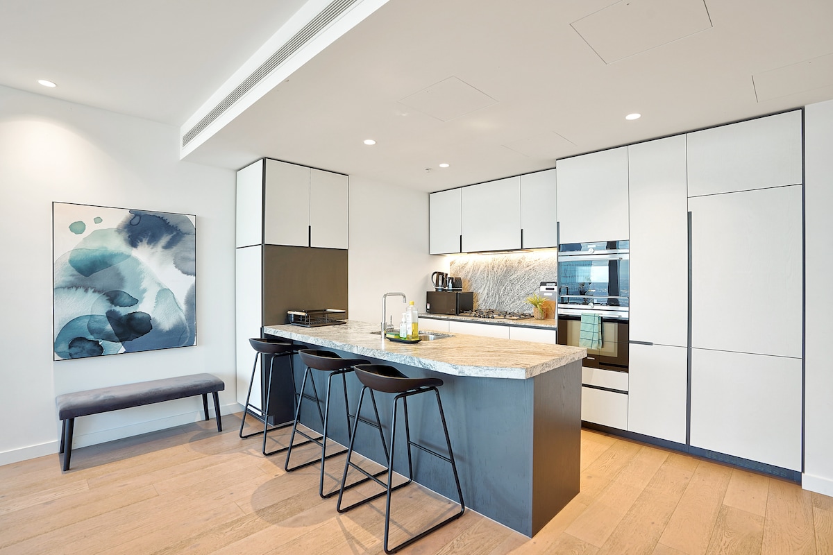 Eingebettet im Herzen von Melbournes idyllischer Southbank, ermöglicht The Luxe Loft seinen Gästen, in die urbane Energie einzutauchen, bevor sie sich in einen ruhigen Rückzugsort zurückziehen. Diese exquisite, brandneue moderne Oase mit 2 Schlafzimmern und 2 Badezimmern wurde durchdacht für Personen entwickelt, die optimalen Komfort, Bequemlichkeit und Stil erwarten. Das Luxe Loft am Melbourne Square von Southbank liegt in der Nähe von Melbournes bestem Casino, Cafés, Restaurants, Einkaufserlebnissen und Sehenswürdigkeiten.