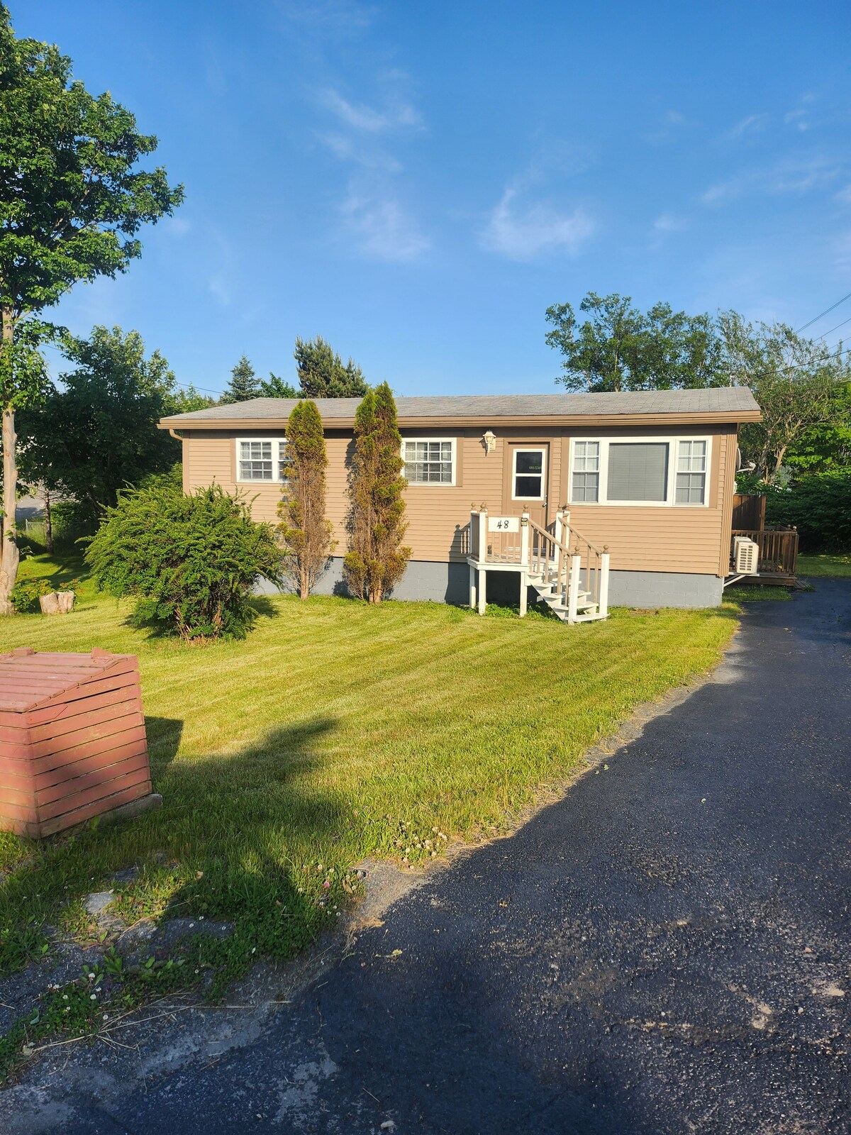 Dieses moderne, geräumige Chalet mit 2 Schlafzimmern liegt am schönen Southeast Arm und ist die perfekte Wahl für einen Kurzurlaub zu zweit, ein paar Tage, um unsere historische Stadt zu erkunden, eine Nacht vor dem Einsteigen in die Argentia-Fähre oder wenn du einfach nur deinen Kopf frei bekommen möchtest, während die Kinder Sport treiben. Eingebettet in den Wald, ist es schwer vorstellbar, dass du 1 Minute von der Hauptstraße entfernt bist. Es ist unmöglich, hier keinen Frieden zu finden. Im Sommer ist der Pool ein echtes Vergnügen. Genieße die Aussicht von oben. Der Pool schließt Ende September.