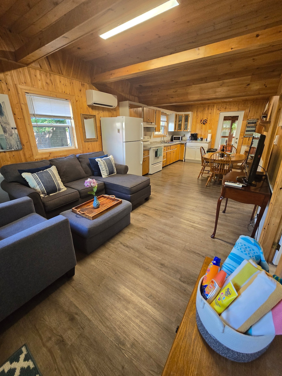 Gemütliches, helles Ferienhaus in Strandnähe in einer ruhigen Sackgasse mit einem 5-minütigen Spaziergang auf einer Promenade zu einem schönen 5 km langen Strand Aboiteau mit blauer Flagge! Das Ferienhaus bietet Platz für 4 Personen. Verfügt über einen elektrischen Kamin mit Ausgang, um sich um die Terrasse und den Pavillon zu wickeln. Doppelbett und ausziehbare Couch. WLAN, Highspeed-Internetzugang, TV, Klimaanlage, maßgefertigter Tisch im Pub-Stil, voll ausgestattete Küche, Propan-Grill, große ebenerdige Dusche, separater Bereich mit Waschmaschine und Trockner. Dart-Brettspiel. Bequeme Innen- und Außenmöbel.