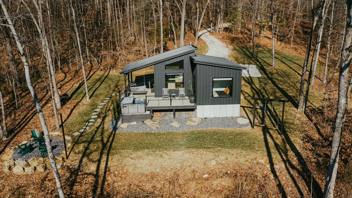 Privately nestled on over 5 wooded acres & intentionally curated for your stay. Gain access to quiet, immerse yourself in nature, support your rejuvenation, & to tap into your creative flow. Amenities include on-site hiking trail, artist work space, wood burning stove, covered porch, hammocks, outdoor dining, fire pit, moon garden, salt-water hot tub, & outdoor shower. Close to Beaver Lake & located along the Bourbon Trail, just minutes from Wild Turkey & Four Roses distilleries. (Note:18+only)