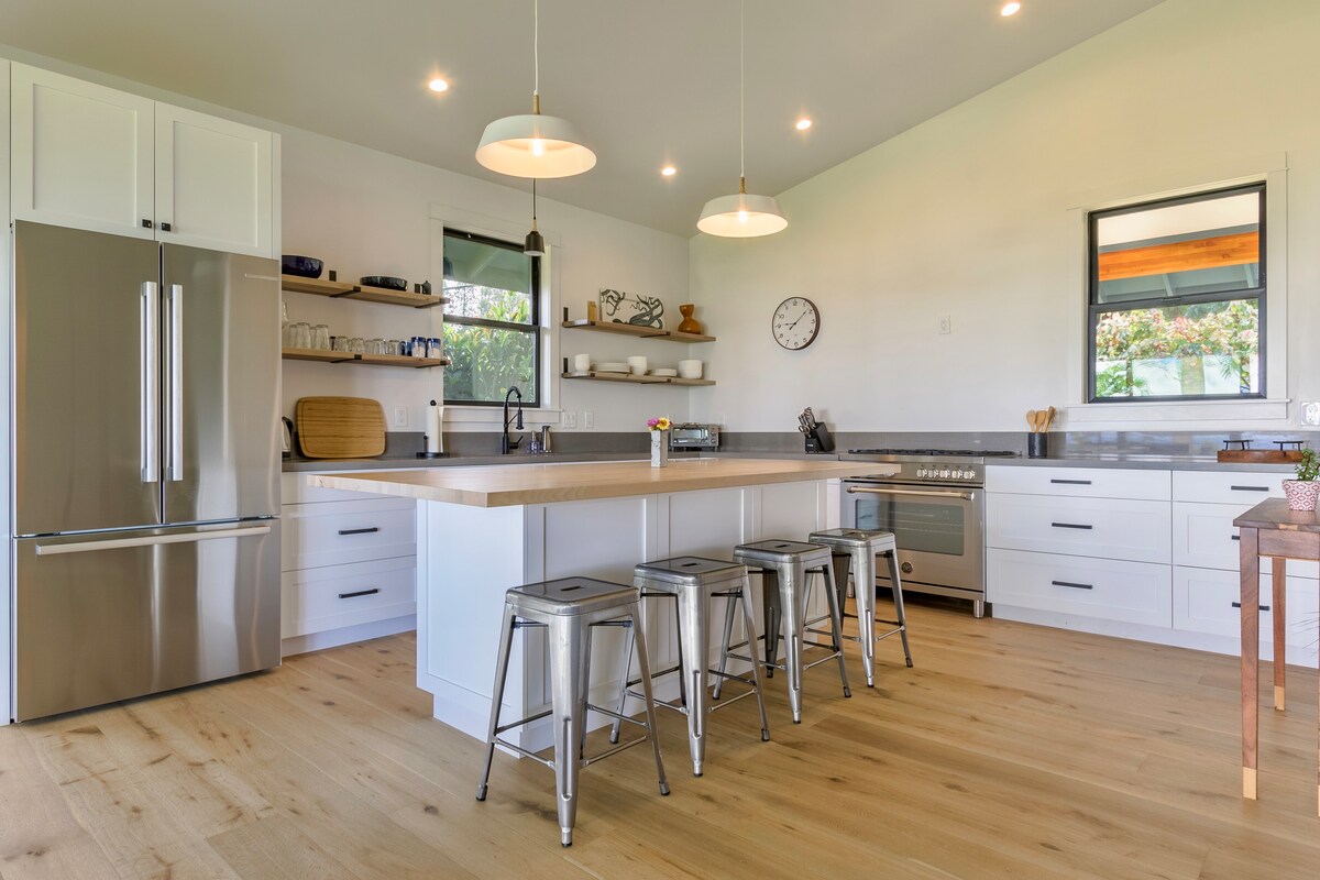 Neues, geräumiges Haus mit zwei Schlafzimmern in Ha'iku, Maui (Genehmigung STPH20200003). Mit herrlichem Meerblick und ruhiger Umgebung an der Nordküste von Maui ist dies die perfekte Unterkunft, um die Straße nach Hana, die Nordküste und das Hinterland von Maui zu erkunden. Perfekt für zwei Paare oder eine Familie. Hier hast du alles, was du brauchst, um die Insel zu erkunden und einen ruhigen Wohnbereich zum Entspannen nach einem Tag voller Abenteuer.