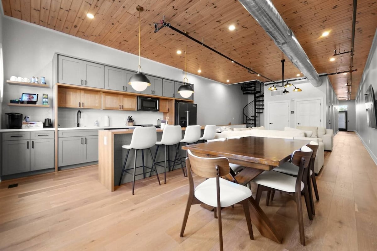 Erreiche dieses maßgeschneiderte Barndominium über eine wunderschöne, gewundene, bewaldete Allee, die zu diesem brandneuen Traverse City Paarausflug führt! Das Hotel liegt südlich des Long Lake auf 10,5 Hektar. Privat und abgeschieden, aber nur eine kurze Fahrt von der Innenstadt von Traverse City, Sleeping Bear Dunes, Weingütern, Stränden, Parks, Skifahren, Bootfahren, Angeln und der Interlochen Academy of the Arts entfernt! Du hast deine eigene Waschmaschine und deinen eigenen Trockner sowie alle Vorräte, die du für einen erholsamen Aufenthalt benötigst! Weniger als 30 Minuten zum Skifahren auf dem Crystal Mountain!