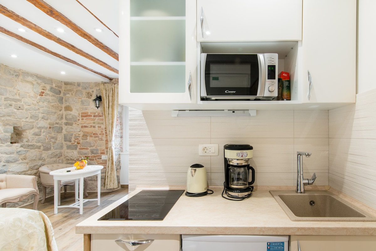 Unique, carefully designed modern studio apartment (40m2) located in the city center only 200 meters from the UNESCO-listed Diocletian's palace, Riva Promenade and the Green open air market. It provides Queen size bed, fully equipped kitchen (microwave, fridge, Nespresso coffe machine,toster,stove...) and a toilet with a shower. Free high speed Wi-Fi access and air conditioning are also available to make your stay as enjoyable and comfortable as possible.