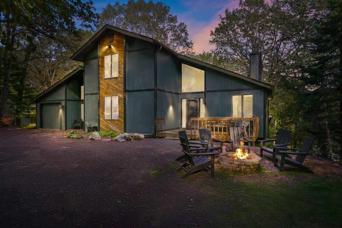 Das T House ist ein gemütlicher, ganzjähriger Zufluchtsort in Lake Harmony. Es liegt in einer ruhigen Straße und ist zwischen den Bäumen eingebettet. Es ist das perfekte Basislager für deine Pocono-Abenteuer. Das Gefühl, sobald du drinnen bist, ist das eines skandinavisch gestalteten, modernen Baumhauses, das sorgfältig kuratiert wurde, um ein wirklich einzigartiges Gästeerlebnis zu bieten. Betrachte die Tierwelt unten durch die großen Fenster und betrachte nachts die Sterne auf der Terrasse. Privater Strandzugang zum See und nur wenige Minuten zum malerischen Jim Thorpe! **Muss mindestens 25 Jahre alt sein, um zu buchen**