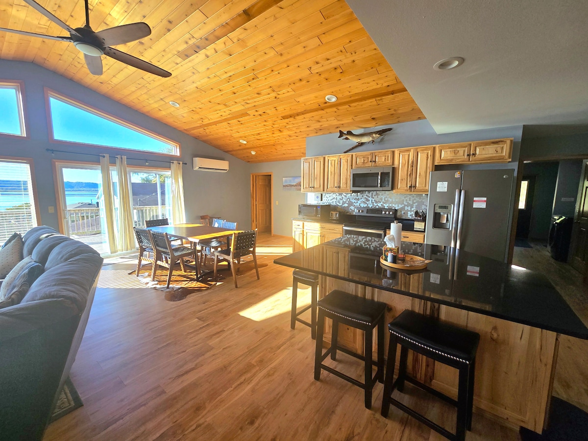 Eingebettet in die Klippen von Caledonia bietet diese Hütte ein echtes Wisconsin-Erlebnis! Bodentiefe Fenster bieten einen atemberaubenden Blick auf den Lake Wisconsin, während du im Charme der Architektur dieser Hütte aus der Mitte des Jahrhunderts wohnst. Nur wenige Minuten von den Klippen des Devil's Lake entfernt, die einige der besten Wander-, Rad-, Wanderwege und Schwimmmöglichkeiten in Wisconsin bieten! Außerdem eine kurze Fahrt von Baraboo oder Wisconsin Dells entfernt, wo du Geschäfte, Restaurants und lokale Sehenswürdigkeiten erkunden kannst!