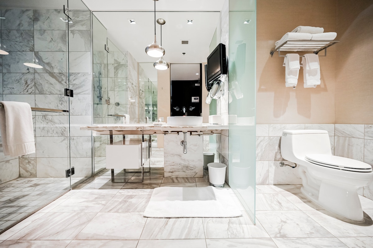 - Ein-Schlafzimmer-2-Bäder-Balkon-Whirlpool-Ecksuite im 21. Stock -MGM Signature Tower 2 (Turm B) -KEINE Resortgebühr -Privater Balkon mit Bergblick - Teilweise Blick auf den Strip vom Hauptschlafzimmer -Kostenloses WLAN -Zugang zu Pools und Fitnesscenter -Check-in jederzeit nach 15:00 Uhr. -Kostenloser Parkservice -In Gehweite zum Strip und TopGolf