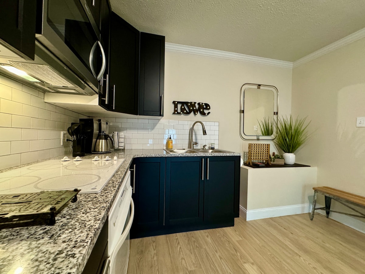 Gute Dinge gibt es in kleinen Paketen! Dieses atemberaubend renovierte Tiny House kann deine ruhige Oase sein. Betritt die moderne Küche, komplett mit großer Bar/Arbeitsbereich, ziehe direkt in das offene Wohnzimmer und um die Ecke davon findest du das Spa wie das Badezimmer und das einladende Schlafzimmer! Komfortabel eingerichtet mit einer entspannten und gemütlichen Atmosphäre, einem Sitzbereich im Freien und einer Einfahrt zum Parken, wirst du es lieben, in diesem Haus zu entspannen und dich im bequemen Kingsize-Bett zu entspannen! In der Nähe von Annehmlichkeiten!