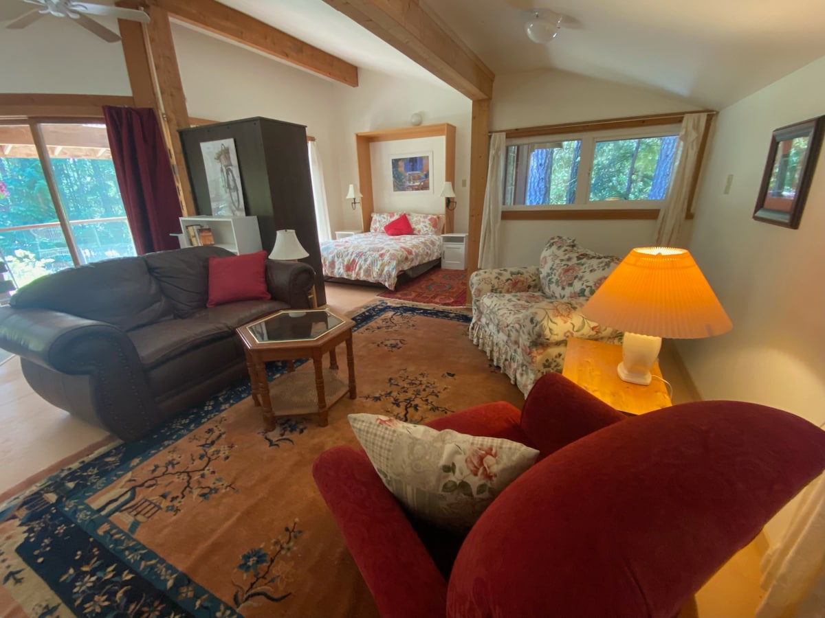 Genieße ein stilvolles Erlebnis in dieser zentral gelegenen Hütte in Upper Gibsons. Die Cosmic Cabin ist ein neu renovierter Raum mit 1 Schlafzimmer auf unserem 2,5 Acre großen Grundstück auf Reed. Die Hütte ist ein super flippiges, privates und entspanntes zweites Zuhause. Zu Fuß erreichst du so viele Annehmlichkeiten: Öffentliche Verkehrsmittel, Gibsons Park Plaza, Sunnycrest Mall, Persephones und alle Restaurants und Geschäfte entlang des 101 Hwy. Genieße deinen Aufenthalt in unserer Cosmic Cabin inmitten der Bäume!