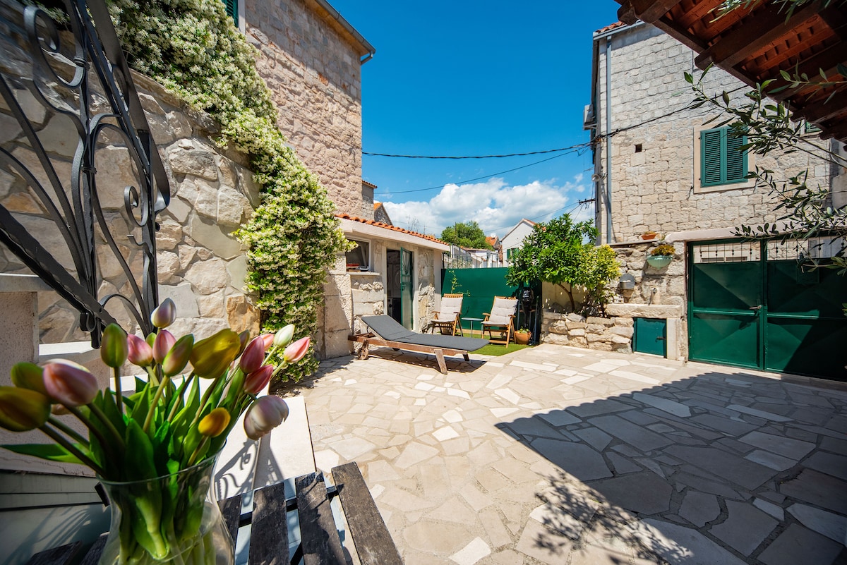 LILA, kürzlich angepasste, voll ausgestattete Studiowohnung mit Balkon, befindet sich auf dem höchsten Gipfel der Altstadt von Šibenik, unter der bekannten Festung St. Michael. Die Einzigartigkeit unseres Ortes ist der atemberaubende Panoramablick auf die Altstadt von Šibenik, die Brücke, die Jakobskathedrale, den Stadtstrand Banj und die umliegenden Inseln. Vor der Wohnung haben wir einen schönen rustikalen Kräutergarten, sodass du die Kräuter pflücken und deinen eigenen Bio-Tee zubereiten oder deine Mahlzeit würzen kannst ;)