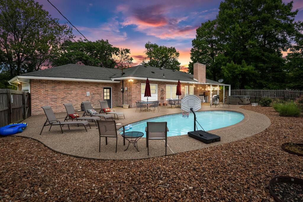 Escape to a peaceful retreat just outside of St. Louis! This charming ranch-style home features a separate guest house, providing plenty of space and privacy for your group. Unwind in your own private backyard oasis, complete with a sparkling pool and a relaxing hot tub perfect for soaking after a day of exploring. Whether you're looking for a quiet family getaway, or a place to stay while doing business in the area, this home provides the perfect blend of comfort and convenience.