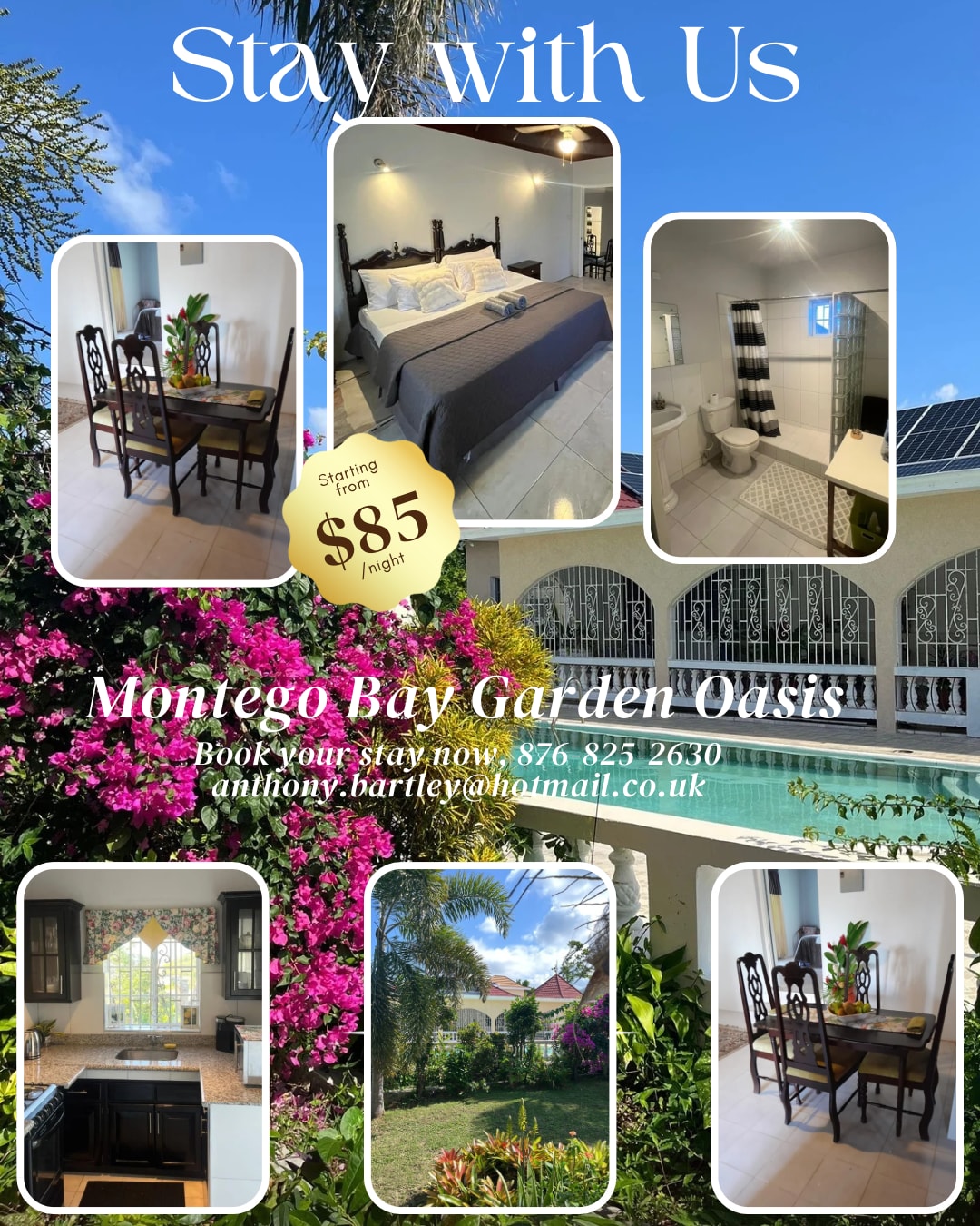 Bereite dich über unsere natürliche und moderne Ästhetik und Rücksicht auf eine erdige, geräumige, komfortable, erlebnisreiche und zentrale Lage vor, unsere üppige Landschaft, die aus leckeren jamaikanischen Köstlichkeiten und Gärten mit Lebendigkeit bis hin zu einem Meerblick des Horizonts/den Sonnenbetten mit Blick auf die Bucht von Montego besteht; perfekt, um aufzustehen und zu glänzen, mit einer grenzenlosen Denkweise und einer bestätigenden Umgebung; beruhigend und füllt deine Kapazität und Mietskraft in einen Zustand, in dem ich und wird es.