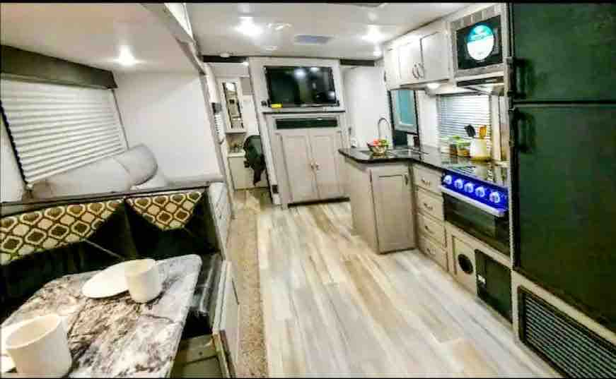 2023 Wohnmobil im Herzen von Mandarin Jacksonville. Es ist 15-20 Minuten Fahrt von den meisten Orten in der Stadt entfernt. 30 Minuten Fahrt zum historischen Old St. Augustine. Es verfügt über ein Queensize-Bett und 3 kleine Etagenbetten für Kinder. Es gibt einen Sichtschutzzaun auf der Rückseite des Wohnmobils für deinen Komfort, wenn du draußen sitzen und eine Mahlzeit am Tisch genießen möchtest. Parkplätze stehen in der Einfahrt und einem sichtbaren Weg zur Verfügung, der dich zum Eingang des Wohnmobils führt.