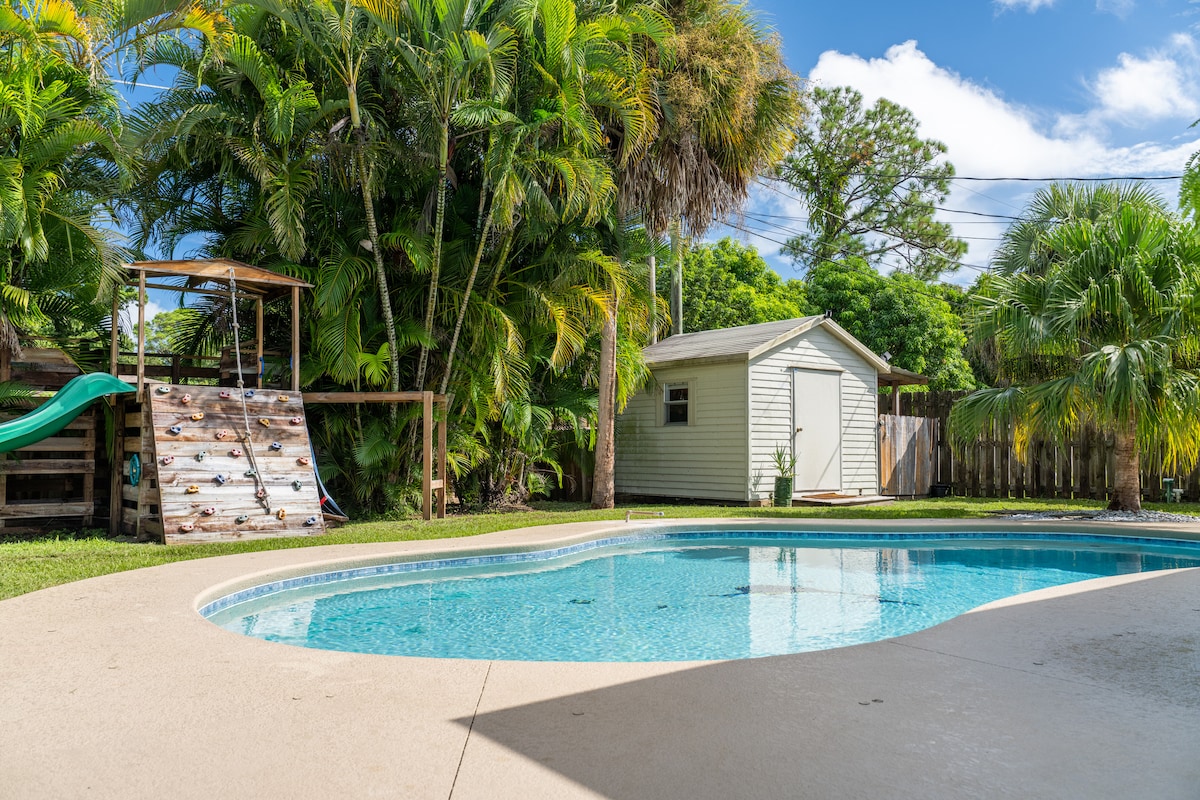 Willkommen in The Palm, einem stilvollen 3BR-Rückzugsort, nur wenige Minuten von Stuart Beach, Jensen Beach und der historischen Innenstadt von Stuart entfernt! Entspanne dich an der privaten Feuerstelle im Hinterhof, entspanne dich auf der abgeschirmten Terrasse mit Smart-TV und Hängestühlen oder koche in der modernen, voll ausgestatteten Küche. Unser Zuhause ist perfekt für Familien, Paare und Remote-Mitarbeiter und verfügt über schnelles WLAN, luxuriöse Memory-Foam-Betten und kinderfreundliche Annehmlichkeiten wie ein Pack & Play, Trinkbecher und eine Wickelstation.