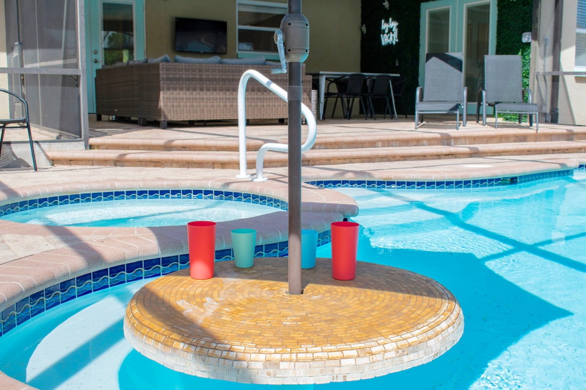 Presented by "ST PETE VACATION HOMES". Explore our 15 Airbnb homes online or on our Airbnb profile. Home sleeps 12 guests. OUTSIDE FEATURES: * Adorable Pink Guest Bungalow *saltwater pool (optional heater) * covered lounge seating w/ bev fridge & TV * swim up bar-top * protective pool enclosure * exciting wildlife to enjoy in the backyard LOCATION: • madeira beach ~6 minutes • walmart, dining + coffee ~2 minutes • john’s pass village & boardwalk~10 minutes • downtown st. pete ~25 minutes