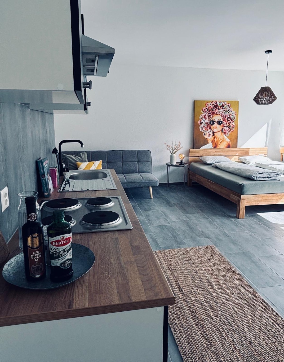 Lehne dich zurück und entspanne dich – in dieser ruhigen, stilvollen Unterkunft. Trotz ruhiger Lage erreichst du die Stadt in wenigen Minuten mit dem Auto. Kein Auto? Kein Problem, eine Busstation ist gleich vor der Haustür. Was erwartet dich? Eigener Eingang, Wohnzimmer mit TV (Smart TV, Netflix,wifi free), Eigene Küche mit Esstisch. Grosses Schlafzimmer mit einem Kleiderschrank. Modernes grosszügiges Badezimmer mit begehbarer Dusche und einem Waschturm. 60m2 Garten mit Sitzgelegenheit
