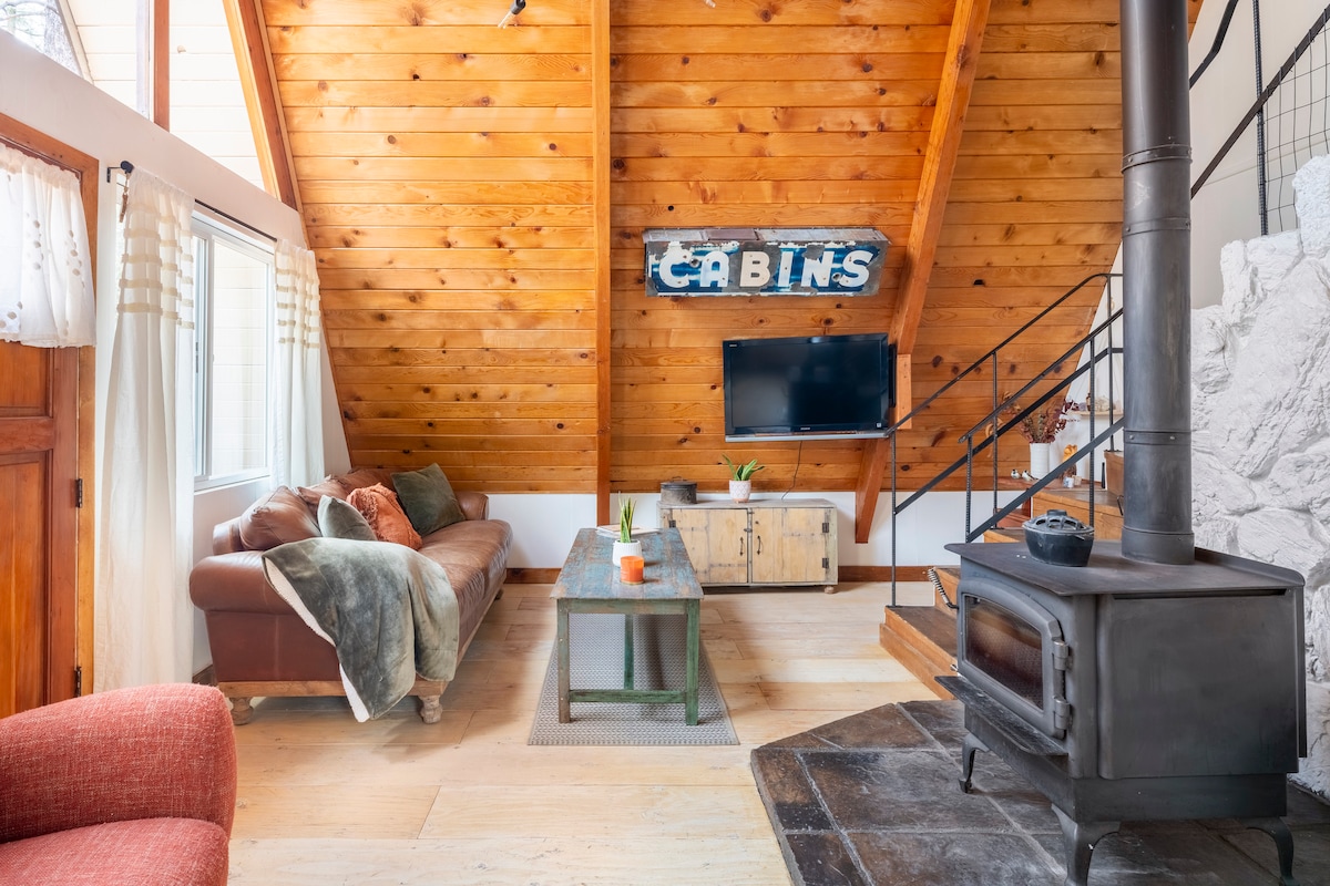 Umgebe dich mit der Ruhe der Bäume und lausche dem Gesang der Vögel @Natures_Lovers_Aframe eine echte und authentische 1964 A-Frame Hütte mit 21 Fuß hohen Decken, Bio-Bett & Holzofen & kostenlosem Brennholz. Große Terrasse & Grill. Romantisch für 2 Personen, bietet bequem Platz für 4 Gäste. 2 Queensize-Schlafzimmer und 1 Badezimmer. Das Loft im Obergeschoss verfügt über eine avocadogrüne Bio-Queen-Matratze. Einfacher eigenständiger Check-in, schnelles WLAN (500 MBit/s nach oben/unten) , hundefreundlich und Zugang zum EV-Ladegerät der Ebene 2. Die Einfahrt und das Grundstück sind flach und leicht zu parken