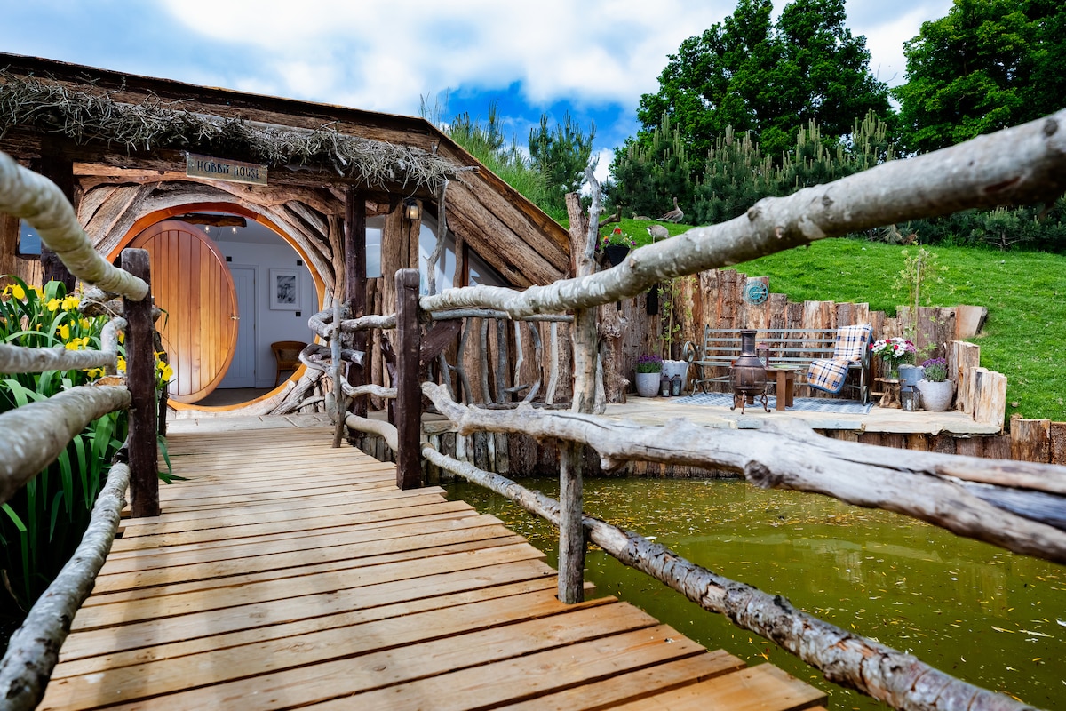 Romantisches Hobbit-Haus mit idyllischem Seeblick