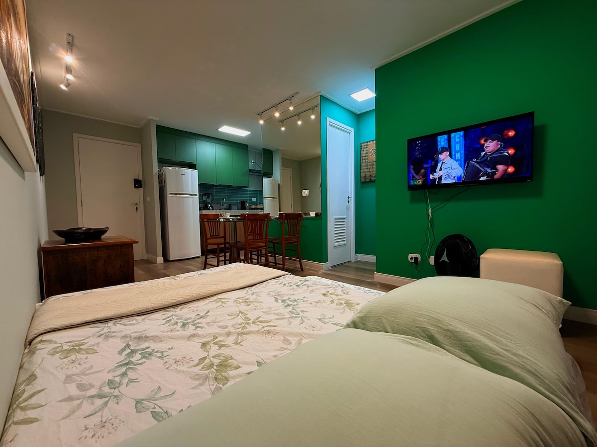 Strandgebäude Jatiuca Gemütliche Wohnung mit neuen Möbeln, saubere Umgebung mit Klimaanlage im Schlafzimmer mit Doppelbett, voll amerikanischer Küche, Wohnzimmer mit TV und eigenem Glasfaser-Internetzugang, Waschmaschine und Trockner, Waschmaschine und Trockner, voll eingerichtet.