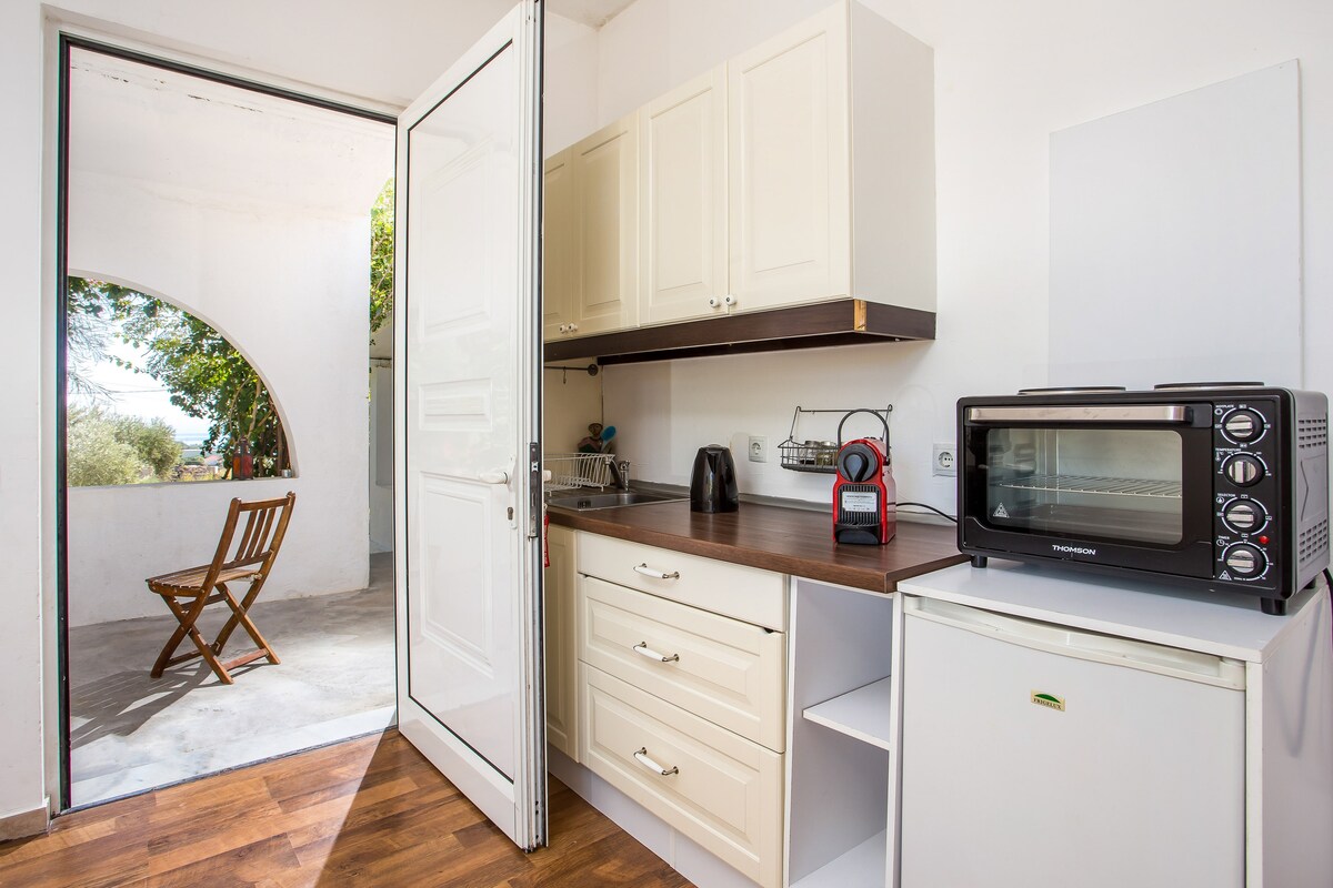 Olive Tree studio, ruhig, tolle Aussicht am Meer.